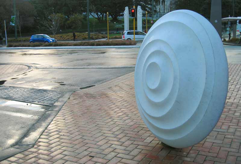 The discs are made out of Italian Carrara marble. Each disc measures 1.8m in diameter and weighs 3.5 tonne